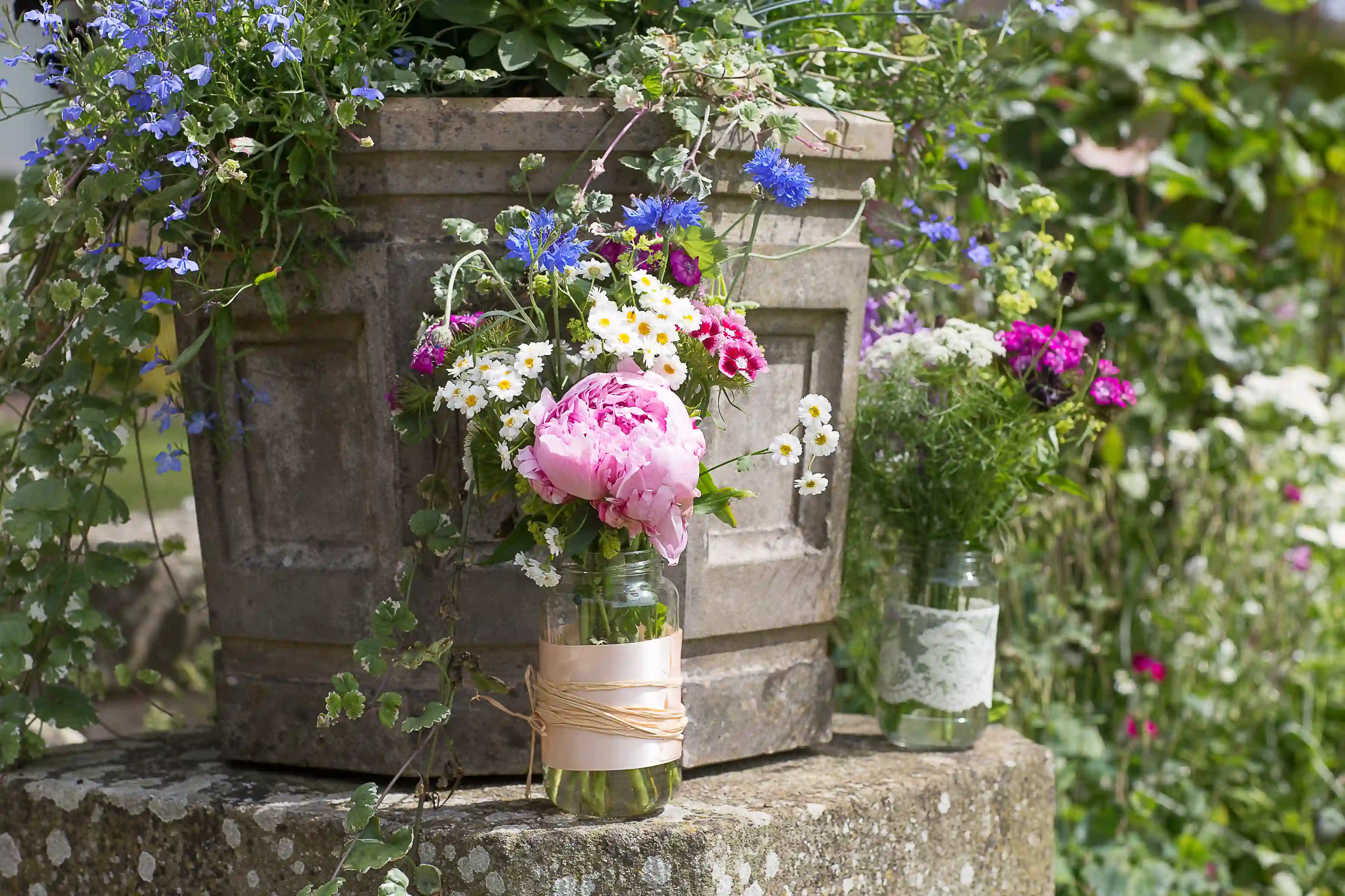 Simple, rustic, seasonal flower arrangements are provided for the ceremony space. These are designed to complement the setting rather than overwhelm it, using locally sourced foliage and flowers arranged in Oxcombe’s own vases.